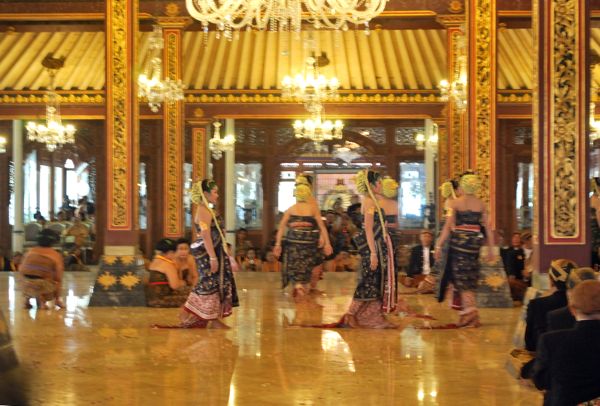 RIGHT: Courtiers seat on the marble floor of the Pendopo Agung.